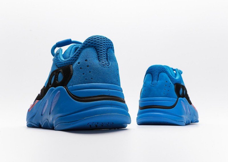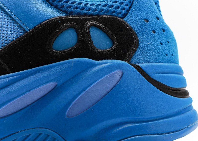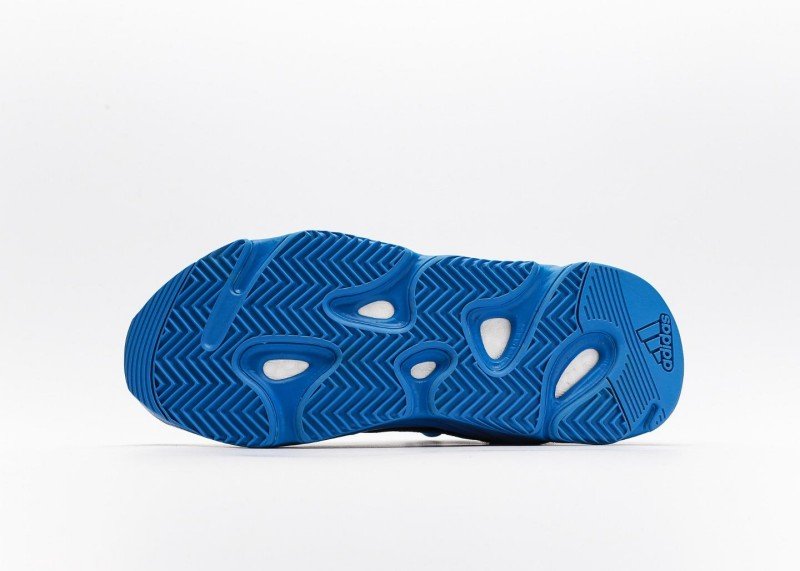 Three circular cutouts on the side reduce weight and enhance breathability. Blue laces with tongue pull tab for easy on/off, smooth overall lines.