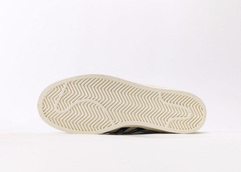 A: The upper is made of cream leather, soft and breathable, paired with black stripes and rubber shell toe for comfort and durability.