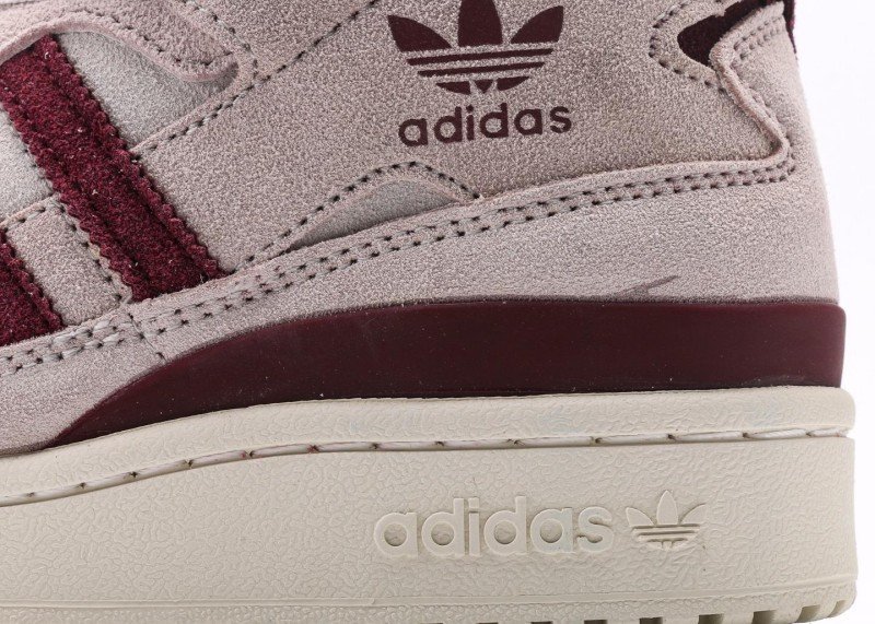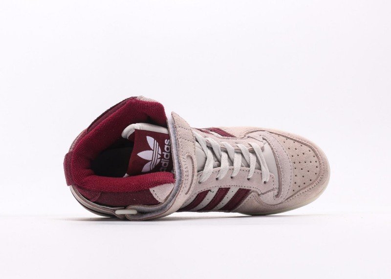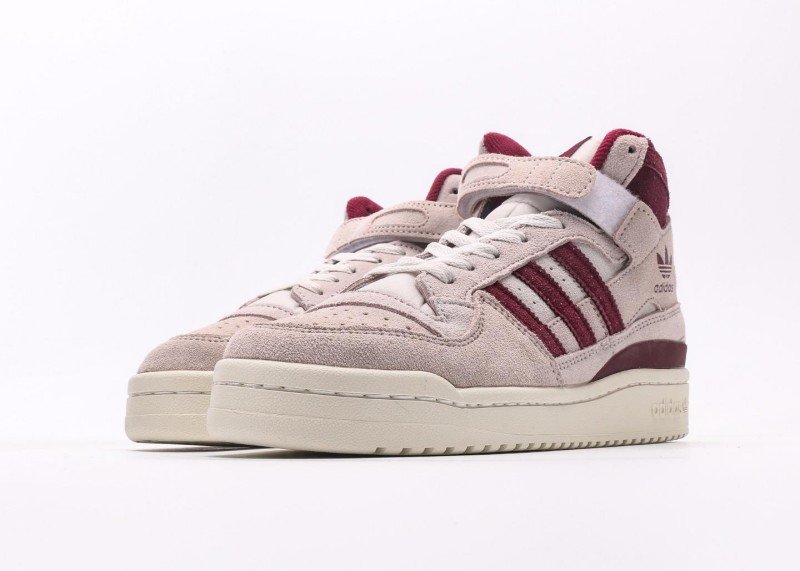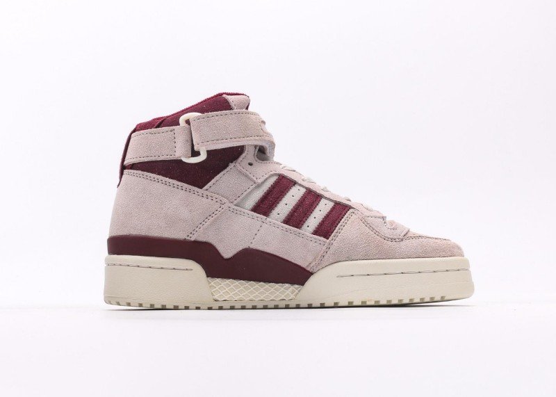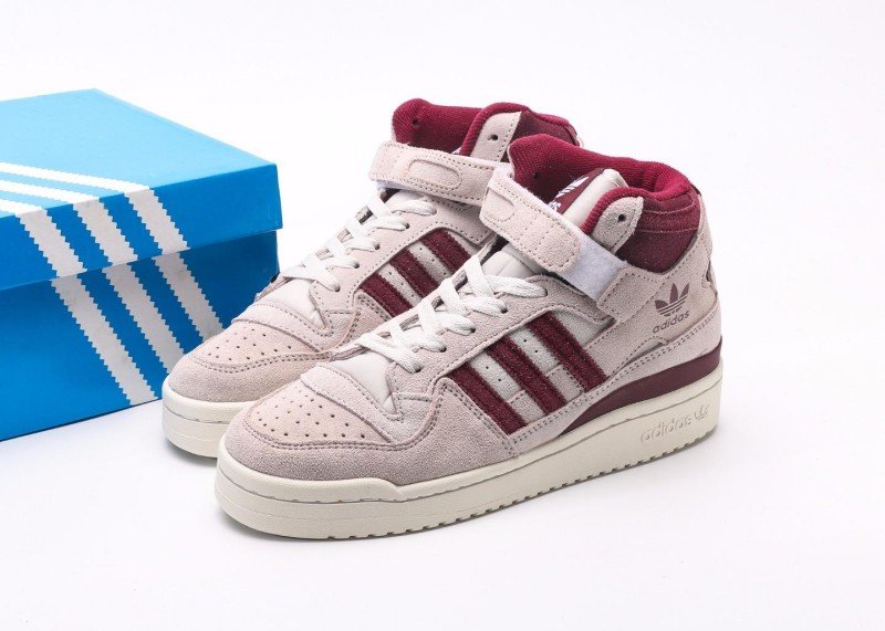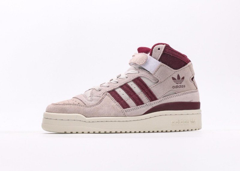 The adidas Trefoil Burgundy Striped Suede High-Top Sneakers are inspired by retro style and feature a stylish and elegant design. The soft light pink suede upper, accented with burgundy stripes, exudes a classic sporty style.