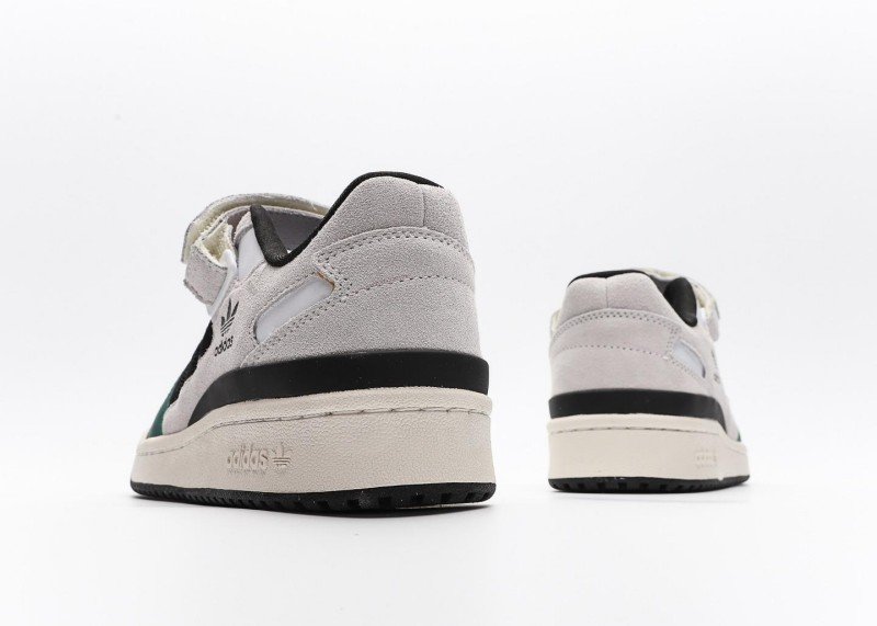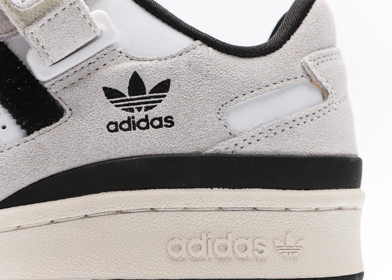 A black Trefoil logo on the side highlights the brand’s identity. The upper features an adjustable Velcro strap for enhanced comfort. The thick off-white sole adds a touch of vintage charm while providing excellent cushioning.