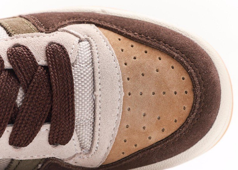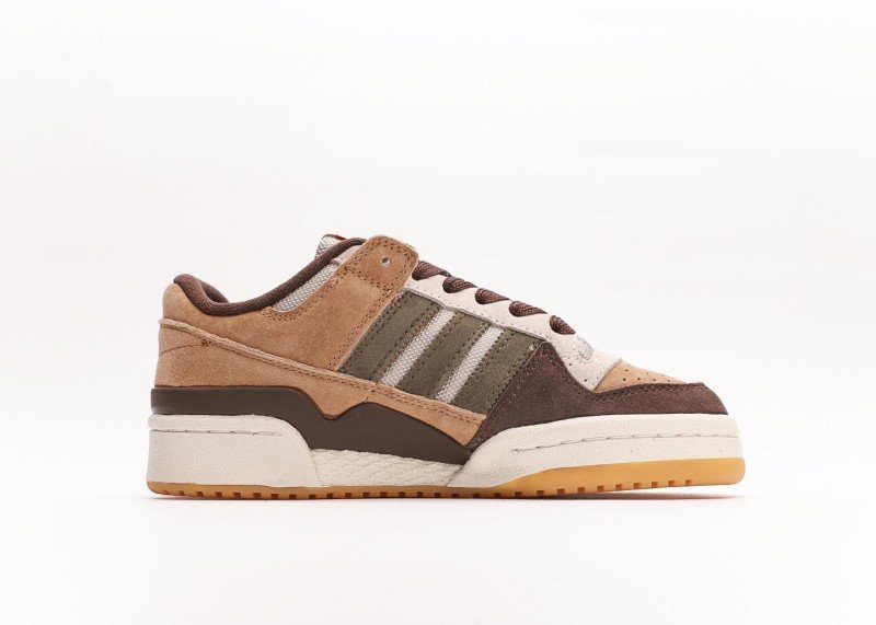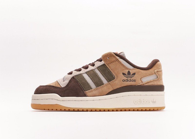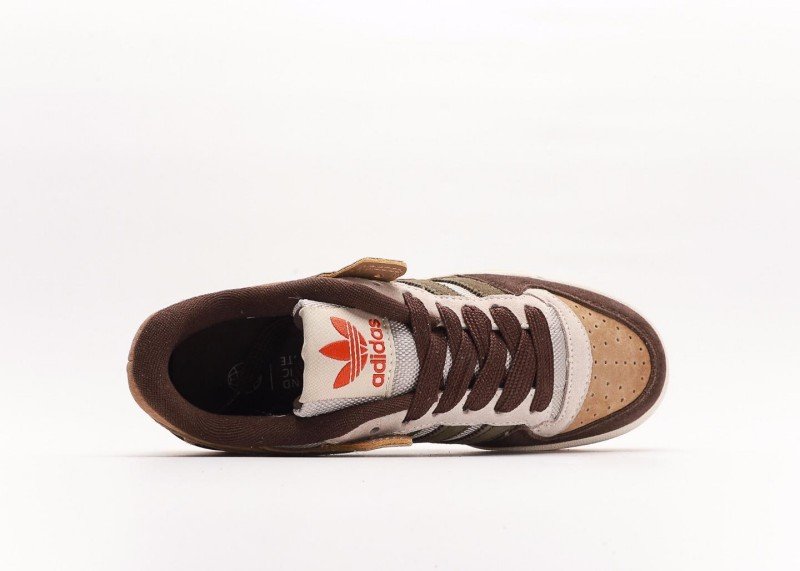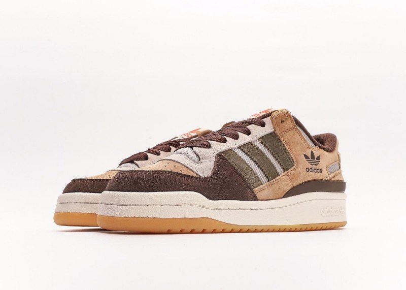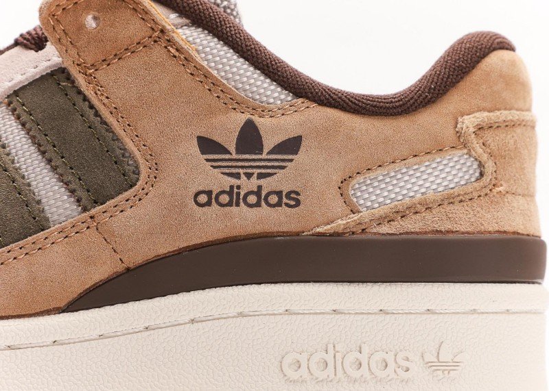 The adidas Trefoil Retro Patchwork low-top sneakers are inspired by retro outdoor styles and feature a multi-material design. A brown suede toe cap and khaki upper are accented with dark green stripes for a rich, layered look.