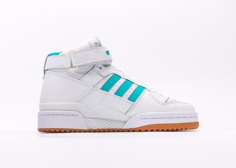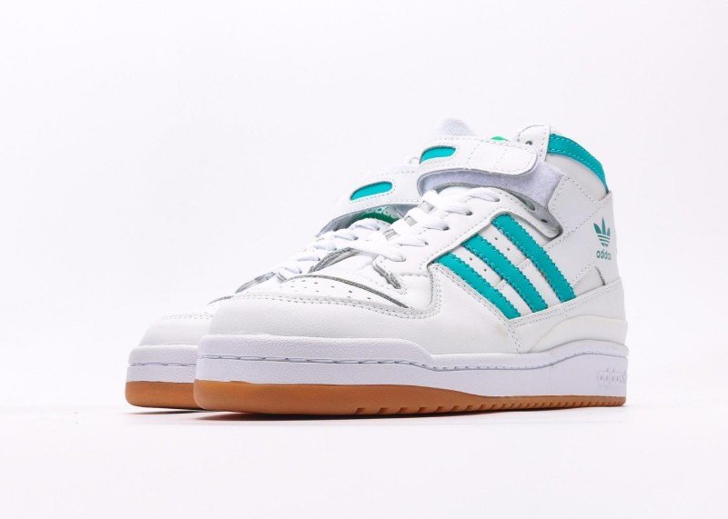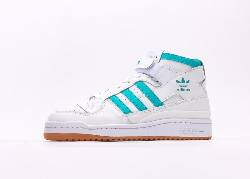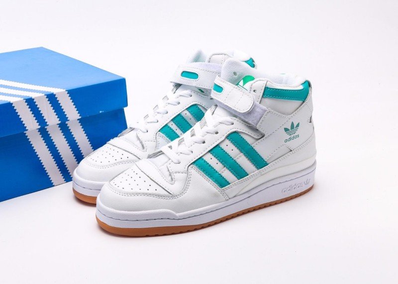The adidas Trefoil high-top sneakers with blue and green stripes build on a classic style while incorporating modern design elements. The clean, pure white upper is accented with blue and green stripes for a fresh and vibrant look.