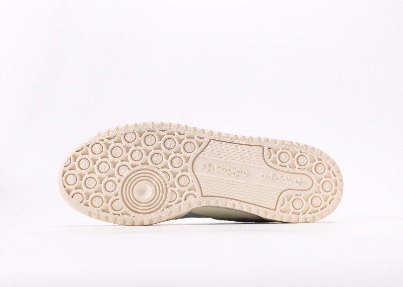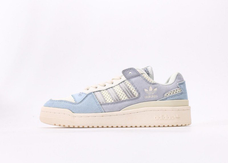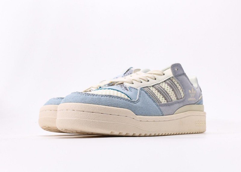 Blue-gray-cream patchwork, three stripes logo, cream thick sole.
