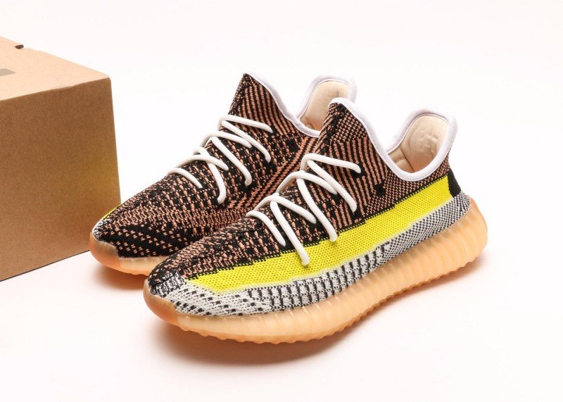 adidas Yeezy Boost 350 V2 Brown-Yellow Patchwork Stripe Sneakers