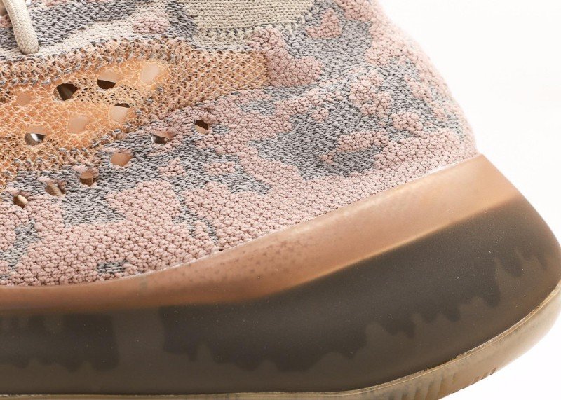 Pink-orange-gray camouflage texture, gradient rubber sole.
