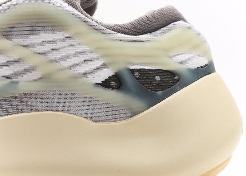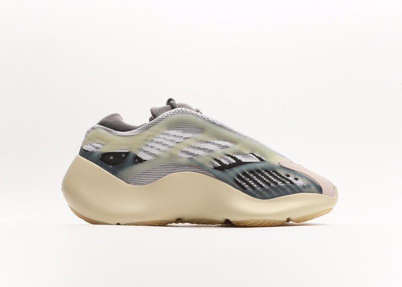 Off-white thick sole with fine纹路 for good grip and durability. Breathable and comfortable woven upper, with black details near the sole on the side, enhancing overall texture.
