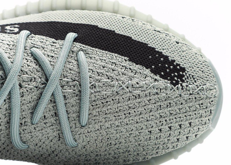 Q: What is the upper material of adidas Yeezy Boost 350 V2 light gray-black striped sneakers?