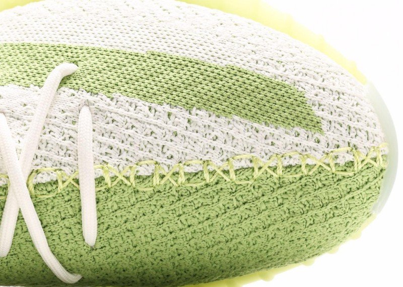 Q: What is the upper material of adidas Yeezy Boost 350 V2 white-green striped sneakers?