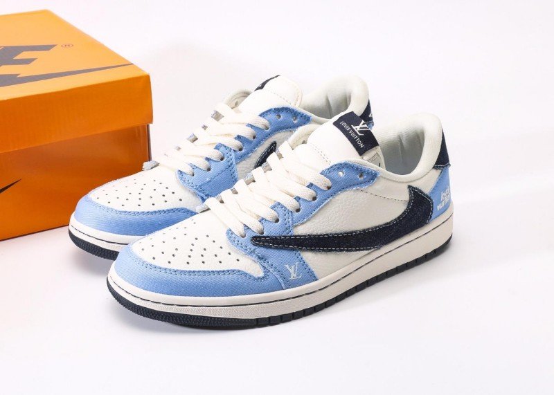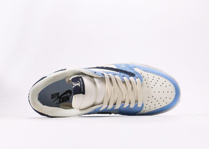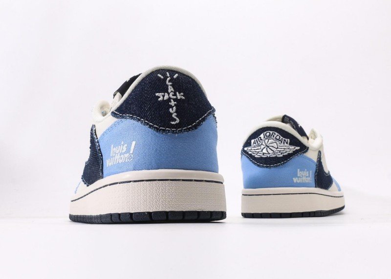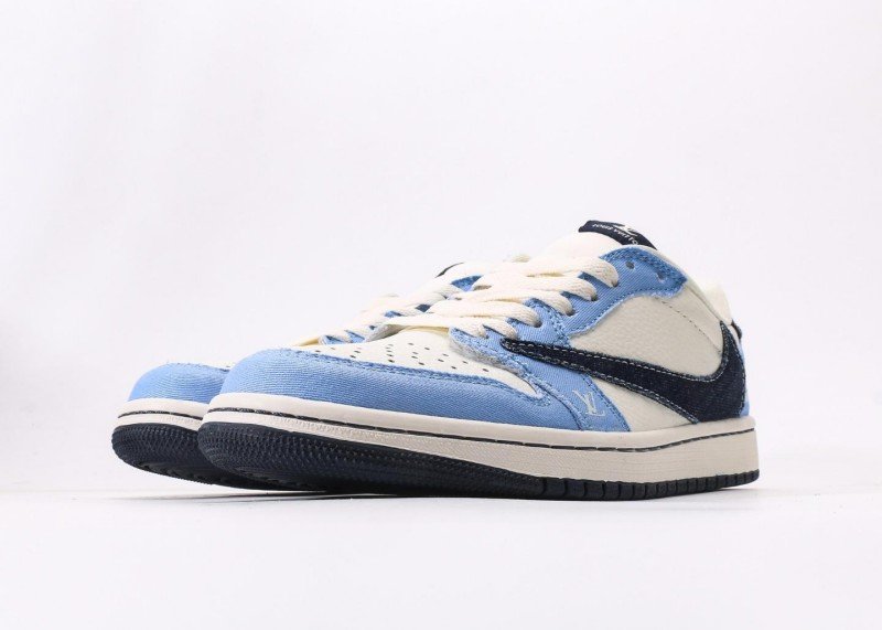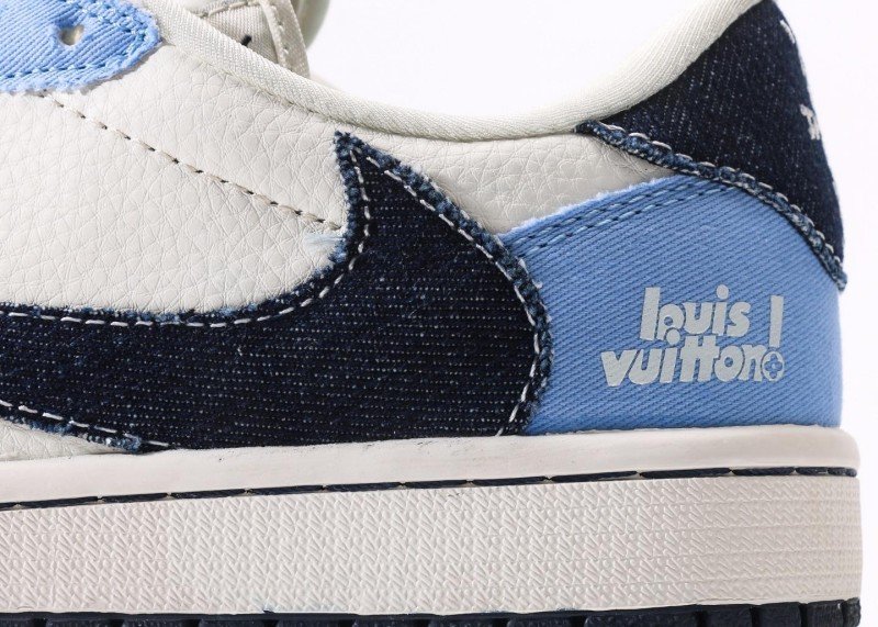 This blue-white denim patchwork Air Jordan 1 Low is a重磅 collaboration between Jordan Brand and Levi’s, combining blue-white denim with leather to reshape American retro street trend, limited globally, a must-have for denim enthusiasts.