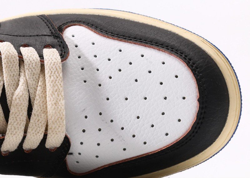 Cream midsole uses lightweight cushioning technology for comfortable feel; blue rubber outsole offers durability and slip resistance, suitable for daily commute and street sports. Perforated design promotes air circulation, keeping feet dry; multi-material patchwork balances support and flexibility for all-day wear.