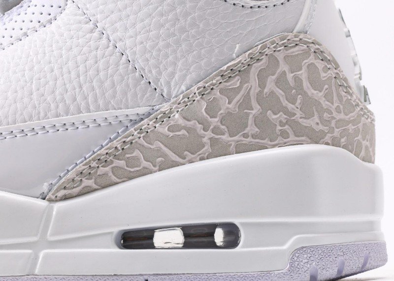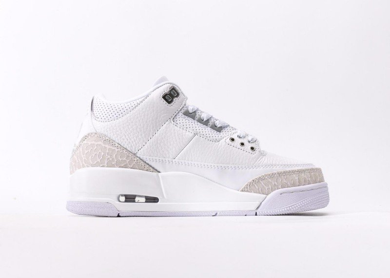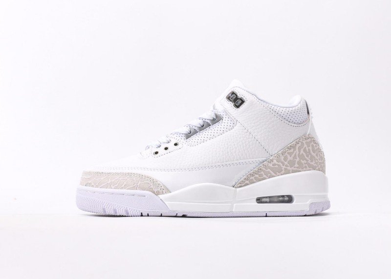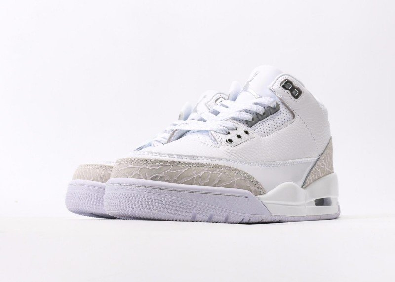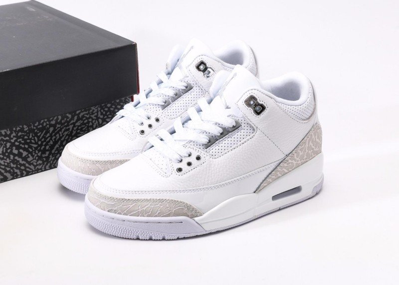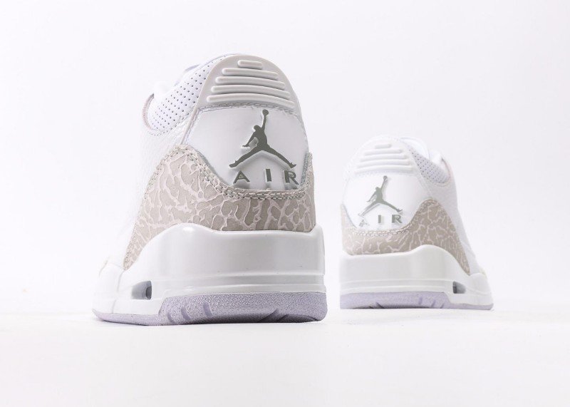 Air Jordan 3 Retro Sneaker features white-gray crocodile texture color scheme, reinventing minimalist luxury style. White leather upper paired with light gray crocodile texture details, unique texture design showcases perfect fusion of elegance and fashion, suitable for quality-conscious trend enthusiasts.