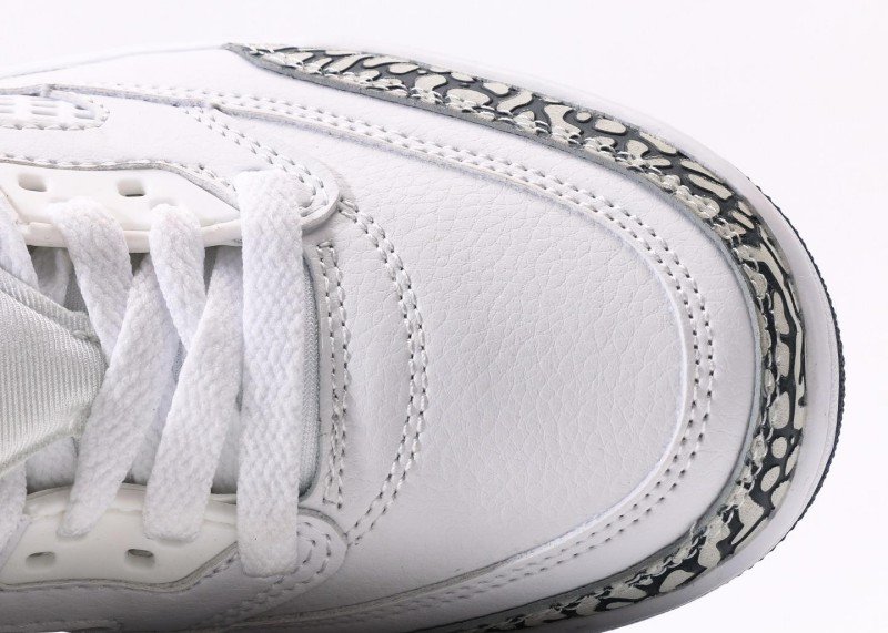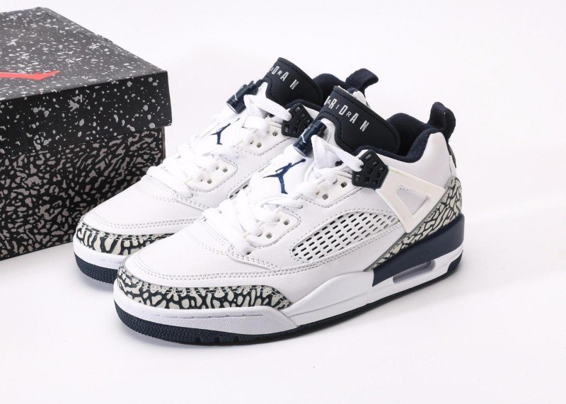 Air Jordan 4 Retro Sneaker features white-blue crackle color scheme, reinventing minimalist fashion style. White leather upper paired with black-white crackle texture and navy blue details, classic color matching showcases perfect fusion of elegance and fashion, suitable for quality-conscious trend enthusiasts.