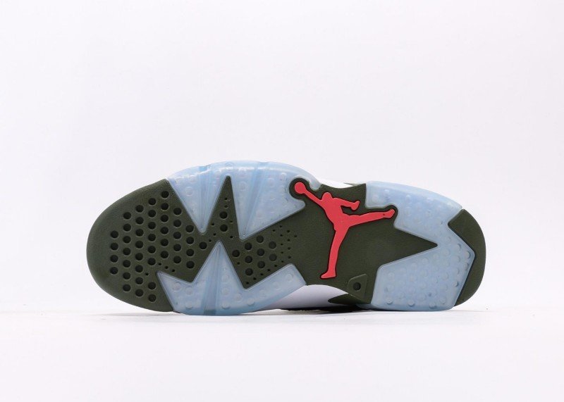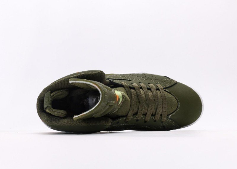 Air Jordan 6 Retro Sneaker features olive green-orange color scheme, reinventing retro fashion style. Olive green leather upper paired with olive green mesh panel and orange details, colorblock design showcases perfect fusion of personality and fashion, suitable for trend enthusiasts.