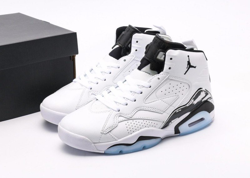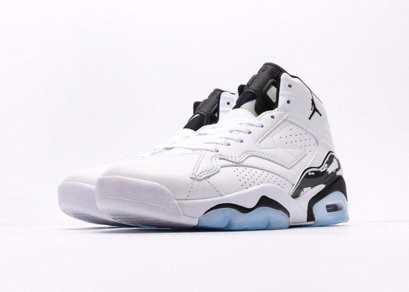Air Jordan 6 Retro Sneaker features white-black color scheme, reinventing minimalist fashion style. White leather upper paired with white mesh panel and black details, colorblock design showcases perfect fusion of personality and fashion, suitable for trend enthusiasts.