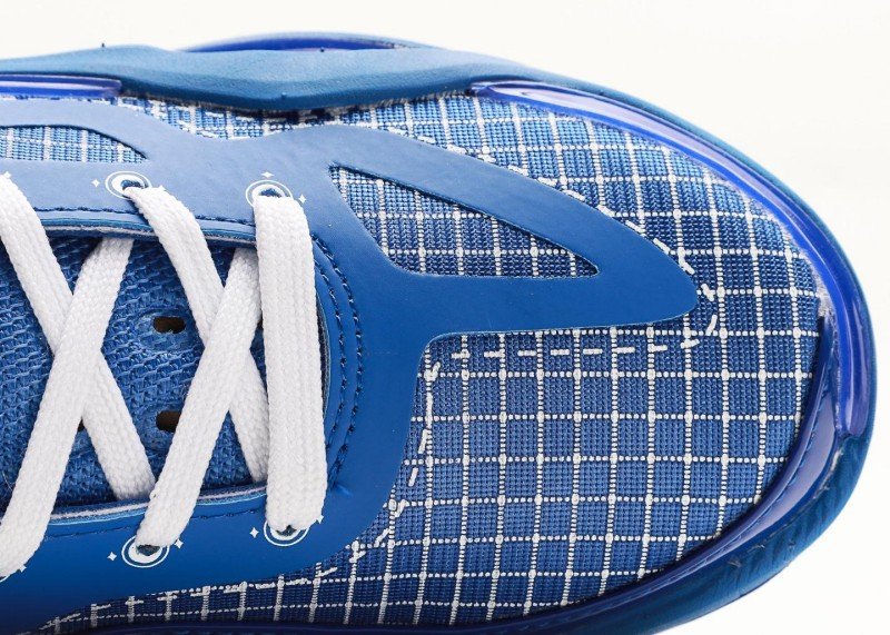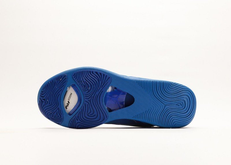 Blue mesh upper, lightweight and breathable; white grid pattern enhances tech visual impact; blue transparent outsole with Zoom Air cushion improves performance.