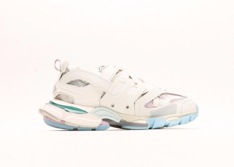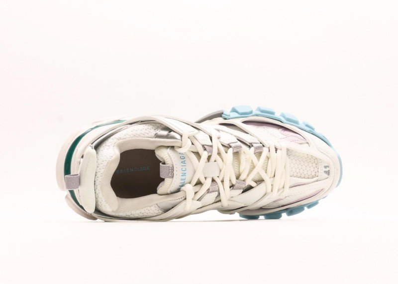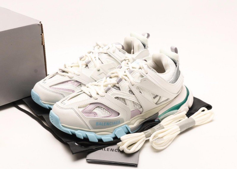 Balenciaga Phantom 3rd Gen延续Track Trainer outdoor silhouette, white-purple-blue colorblock, complex hollow structure, complete with original craft box and factory documentation.