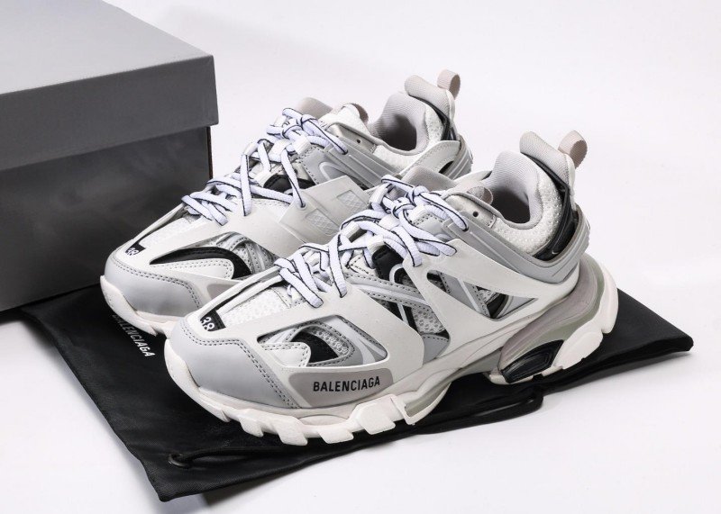 Balenciaga Phantom Sneaker 3rd Gen延续Track Trainer outdoor silhouette, gray-white-black colorblock design, complex upper structure, complete with original craft box and factory documentation.