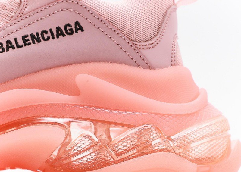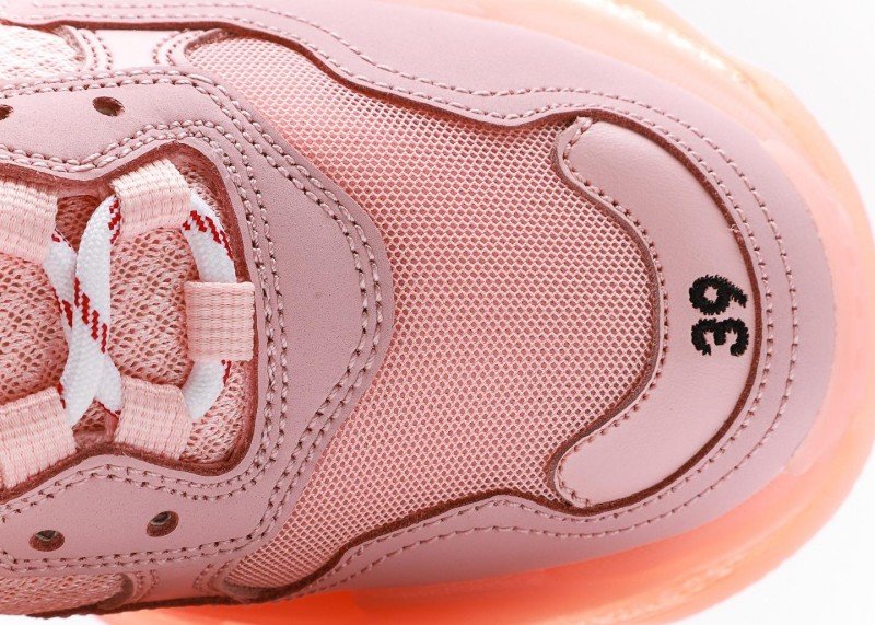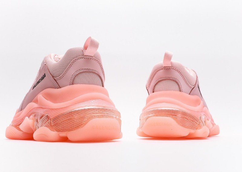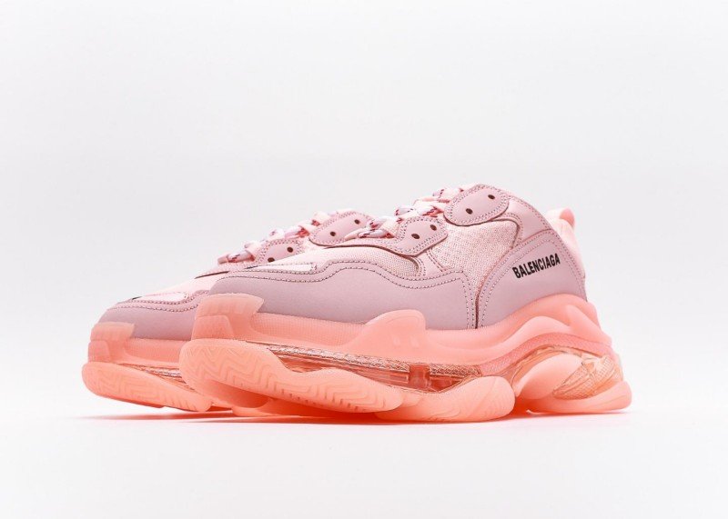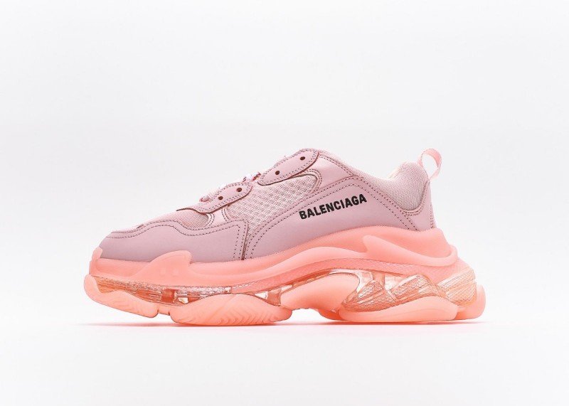 Balenciaga Triple S 2nd Gen features transparent air cushion sole, pink-purple gradient design, complete with original craft box and factory documentation, solving previous bulkiness issue.