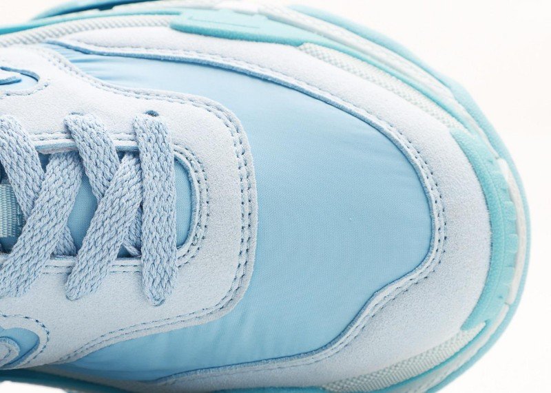 Light blue gradient mesh and leather upper, streamlined structure enhances sportiness, six-layer sole providing 6cm elevation, handcrafted details highlighting luxury craftsmanship, perfect cleanliness non-distressed version.