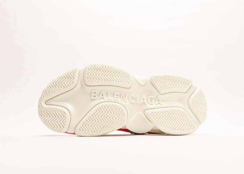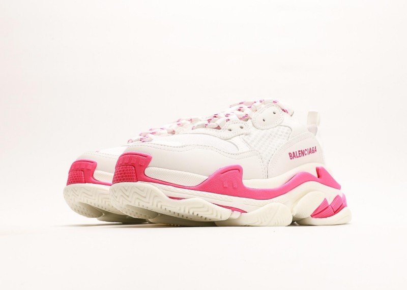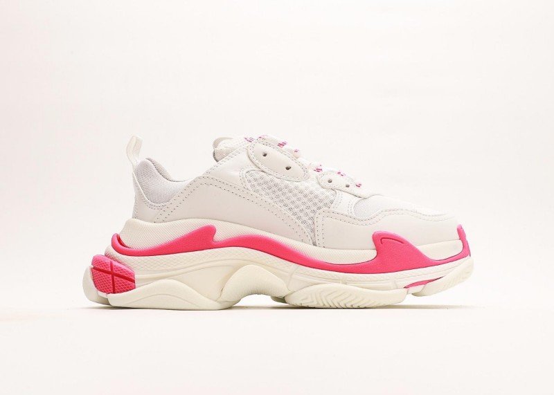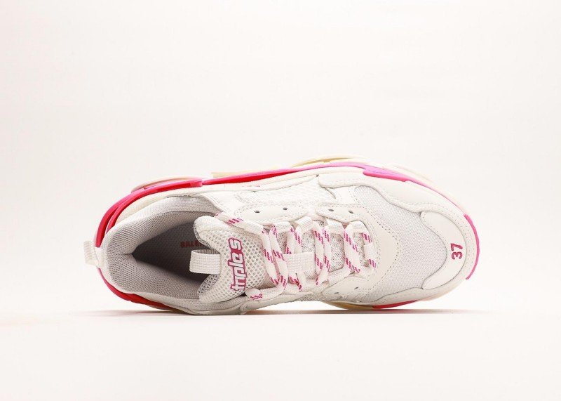 Balenciaga Triple-S Sneaker featuring six-layer sole construction, white-pink contrast upper with mesh panels, complete with original craft box and factory archives documentation.