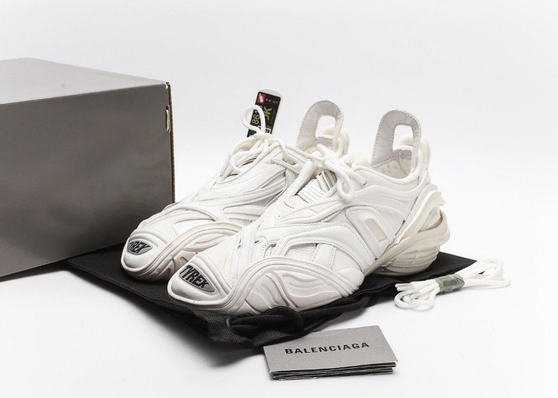 Balenciaga Tyrex 5th Gen combines office shoes with high-tech elements, all-white minimalist design, 200+ nano material components, complete with original packaging for global orders.