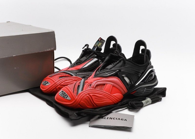 Balenciaga Tyrex 5th Gen combines office shoes with high-tech elements, black-red colorblock, 200+ nano material components, complete with original packaging for global orders.