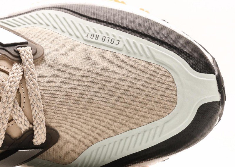 Beige mesh breathable material is lightweight and comfortable, with black horizontal textures on toe enhancing wear resistance, suitable for long-time sports. Special weaving process ensures balanced elasticity and support, keeping feet dry and sweat-free.