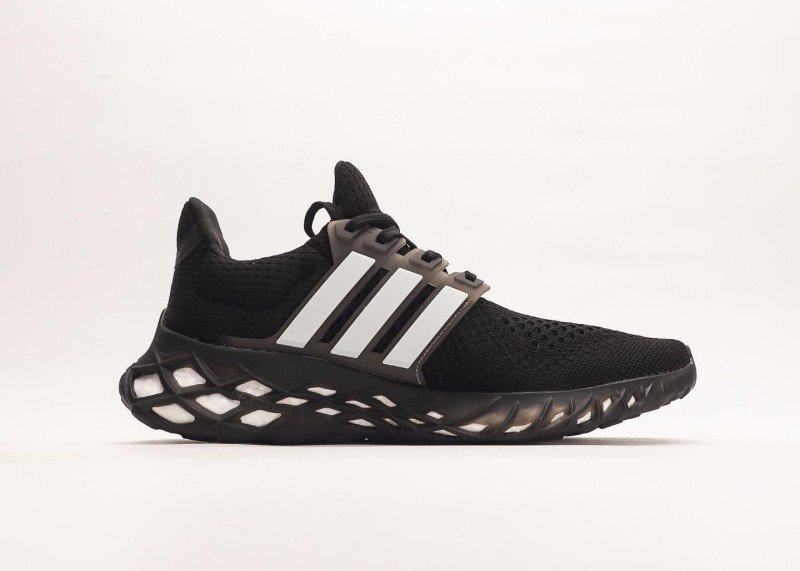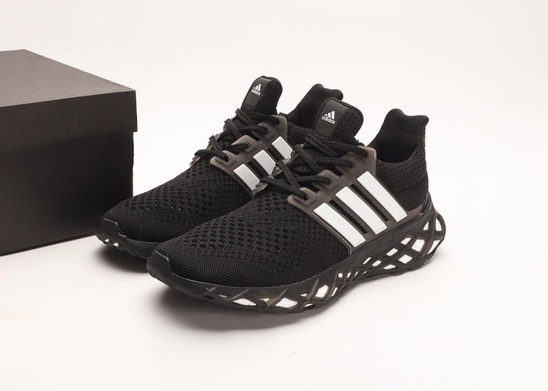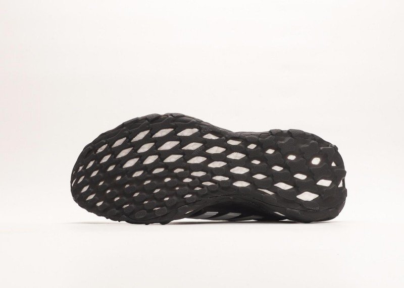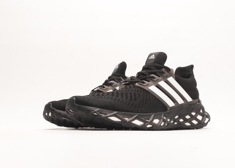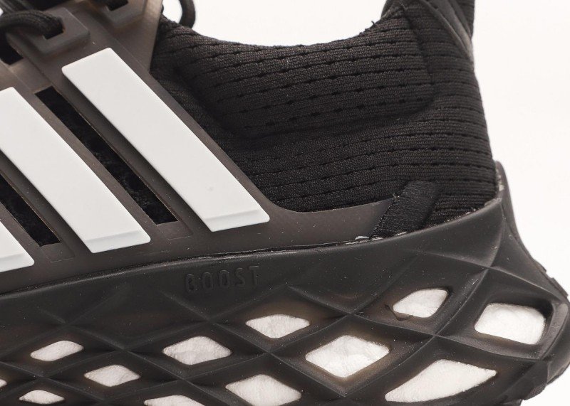 Three parallel white stripes on the shoe side are eye-catching, forming a strong contrast with the all-black upper; the unique honeycomb hollow sole design reduces weight while enhancing cushioning, with white inside the holes adding layering.