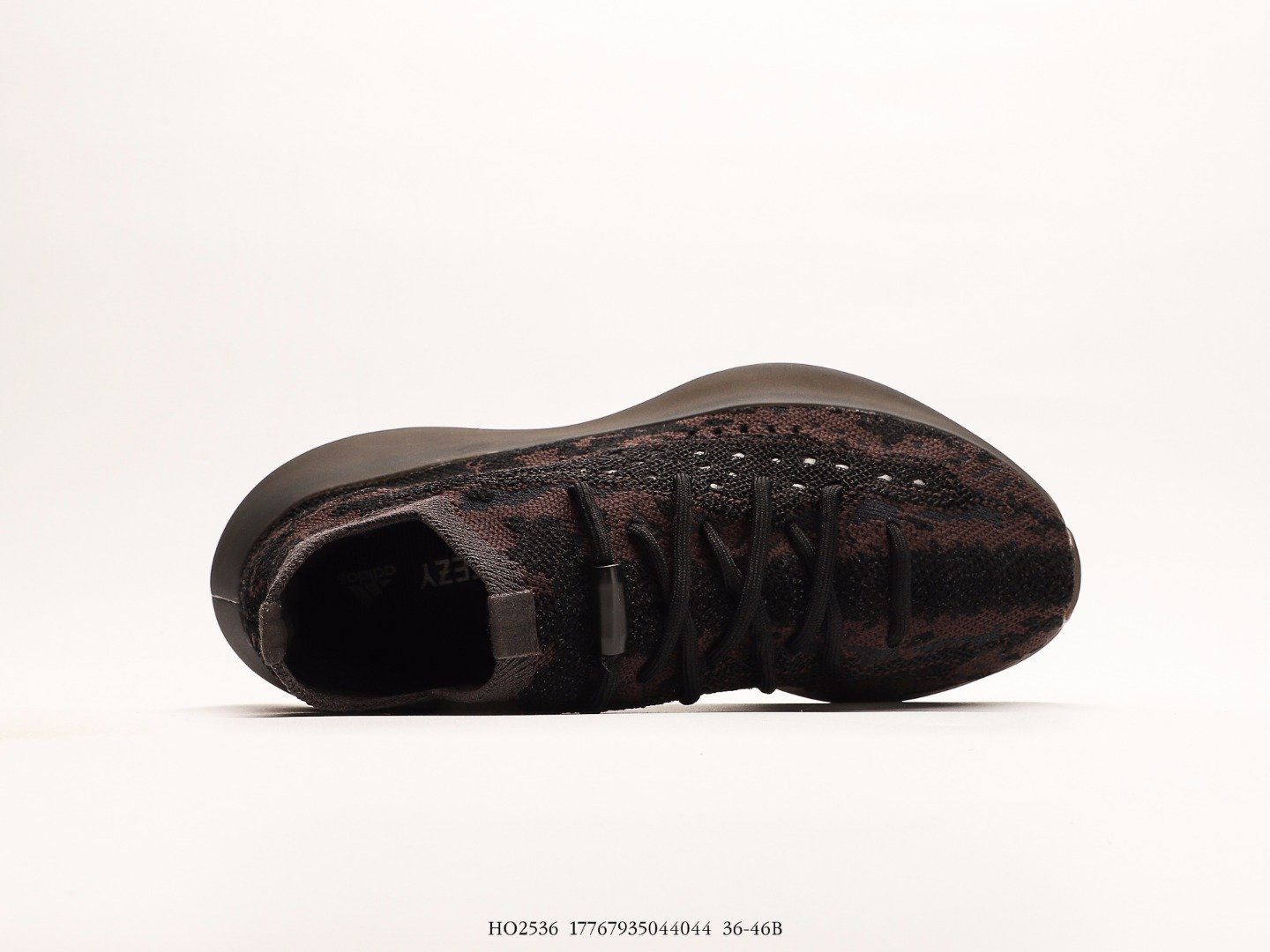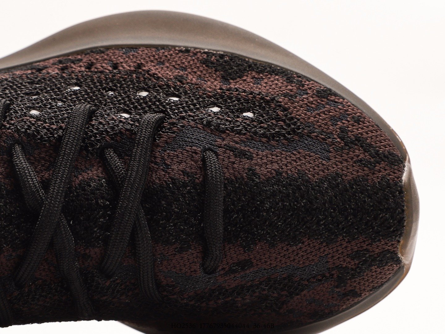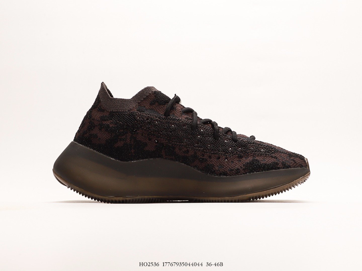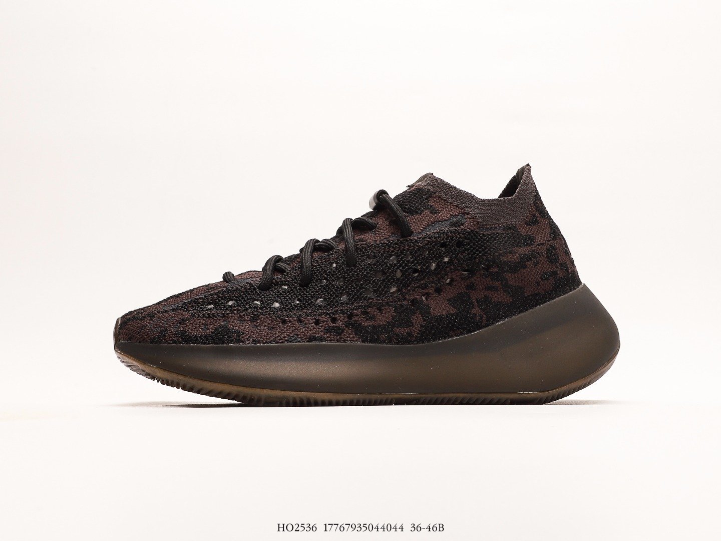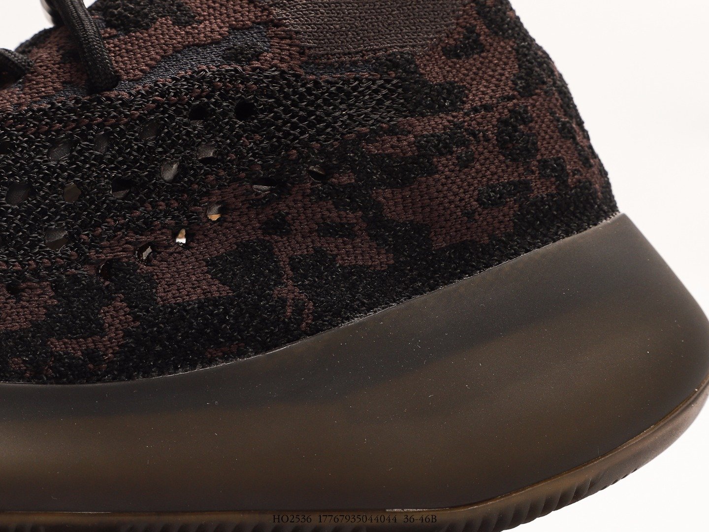 Upper with dark brown and black camouflage pattern knit material, fine texture with hollowed breathable holes, fashionable and unique.