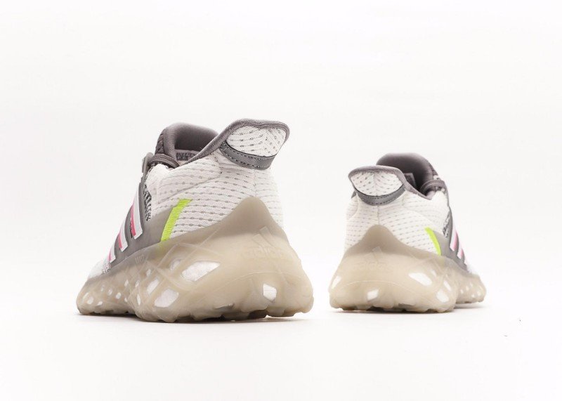This gray-white-pink-yellow patchwork sneaker combines multi-color stripes with modern mesh technology, breaking monotony with pink-white contrast, perfectly blending street fashion and sports functionality.