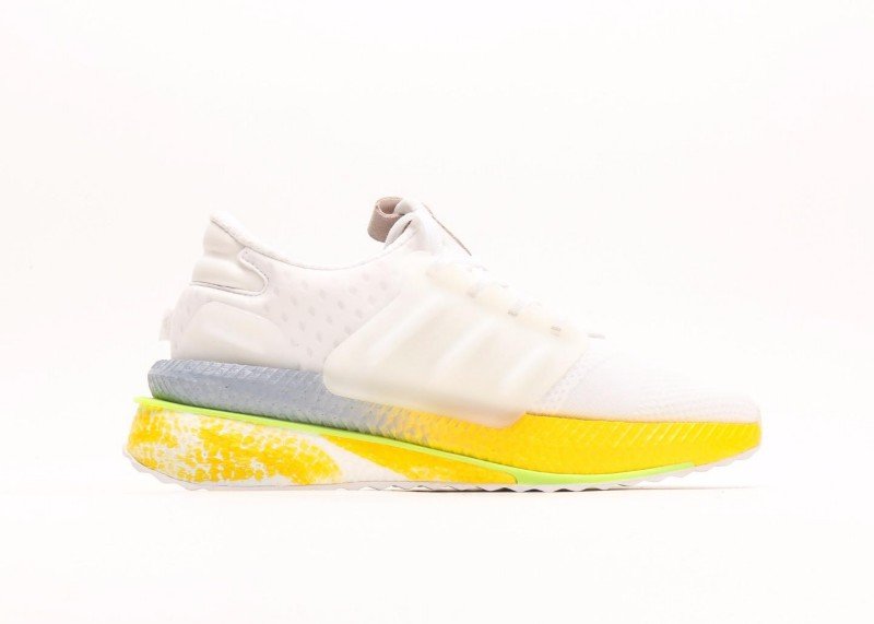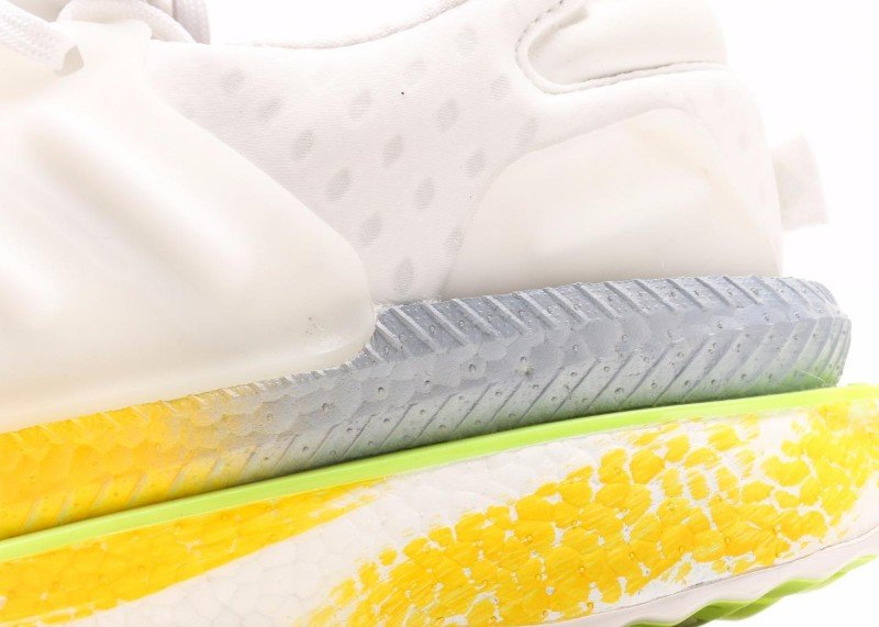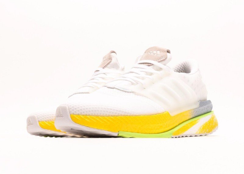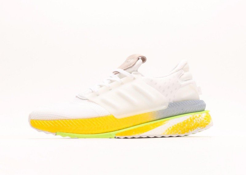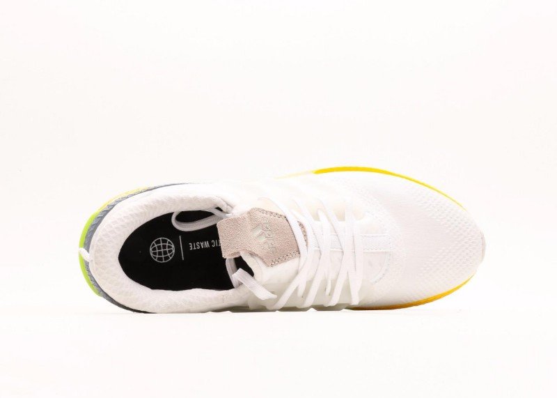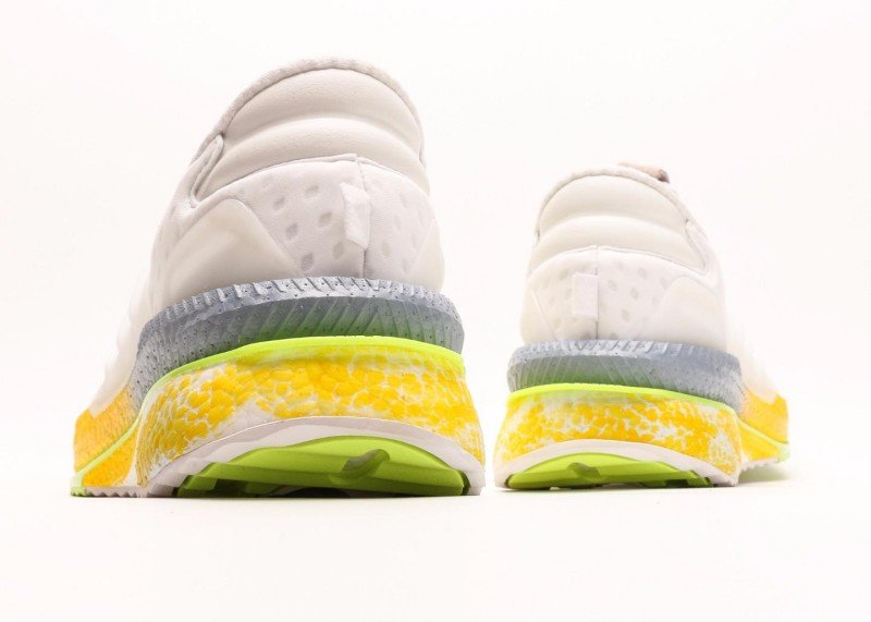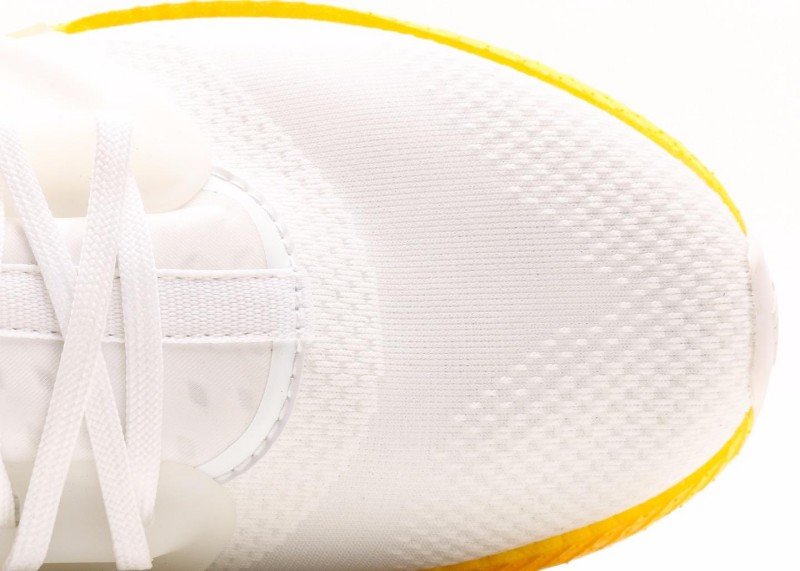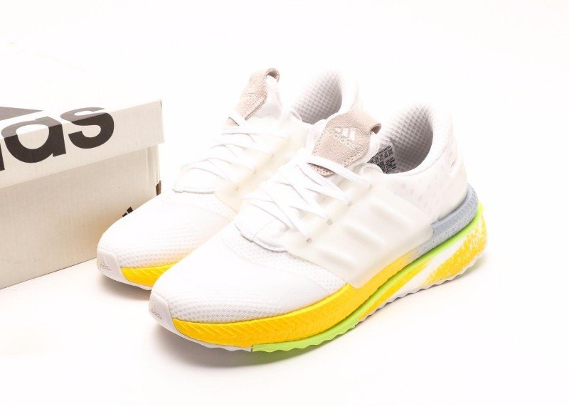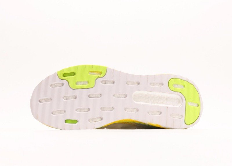 Multi-layer sole design, yellow cushioning area provides good rebound, light green edge adds visual highlights. White upper and gradient sole form distinct contrast, simple yet layered.