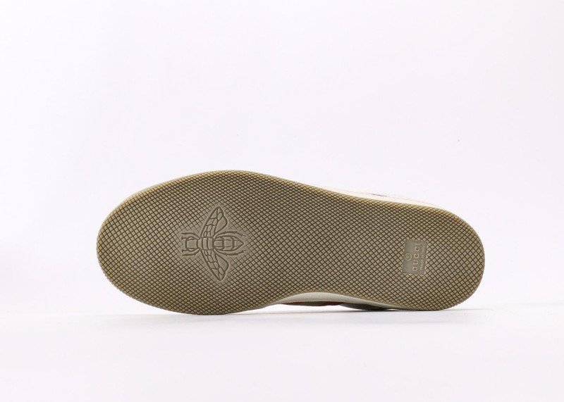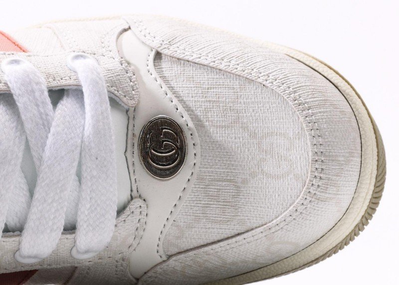 Detailed texture upgrade: white laces with metal GUCCI logo, white leather splicing at toe and heel, enhancing wear resistance. White sole with light brown anti-slip texture on the outside of forefoot and heel, improving grip.