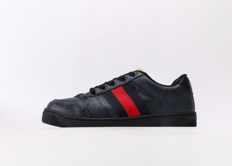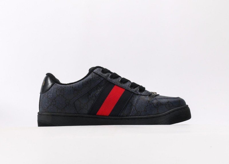 GUCCI 2025ss New Black GG Supreme Platform Casual Sports Sneakers redefine luxury streetwear with iconic interlocking G motif, featuring black calfskin leather paneled with GG canvas, red web stripe detailing, and 4.5cm TPU foam platform sole that balances height enhancement with shock absorption.