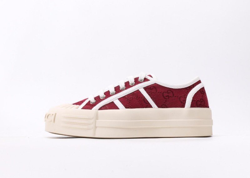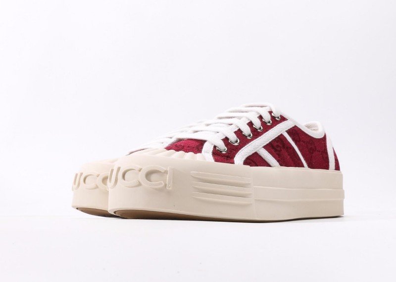 Gucci Cookie Sneaker features classic GG print as core design, crafted from Italian imported ultra-soft calfskin with delicate texture. Three white stripes on the side and silver metal eyelets highlight the brand’s iconic retro style.