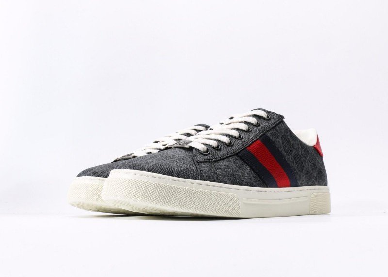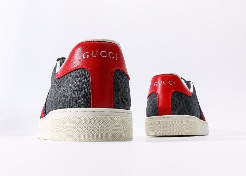 Dark grey upper uses special dyeing process for fade-resistant color; double G embossed pattern presents strong three-dimensional effect; dark grey rubber sole with clear anti-slip texture ensures strong grip, featuring eco-friendly odorless materials.