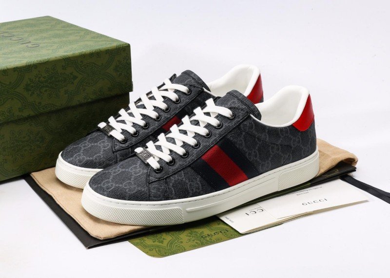 Gucci Dark Grey Glueless Craft Sneaker Collection features market-exclusive high-end glueless technology, with dark grey upper and classic double G embossed pattern, available in sizes 35-46A, packaged in unified counter WY packaging to highlight premium positioning.