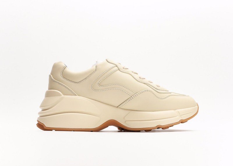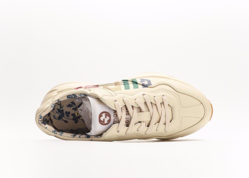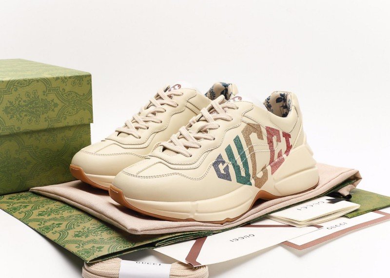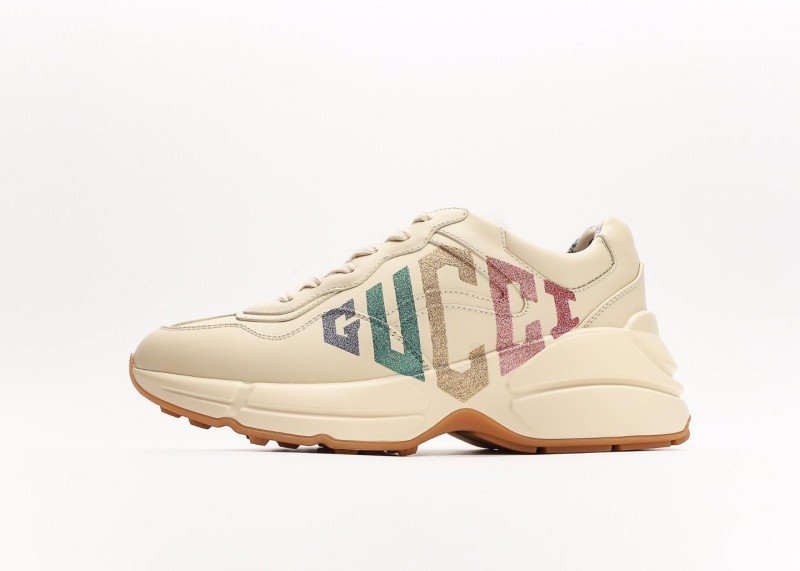 The Gucci Rhyton retro dad shoe, featuring distressed leather, recreates the ’90s retro style. Its angular silhouette subverts traditional running shoe design, and the Gucci strawberry print has become a trend icon. The fading Balenciaga “grandfather” trend has been replaced by the fashion-leading Gucci grandpa shoe.