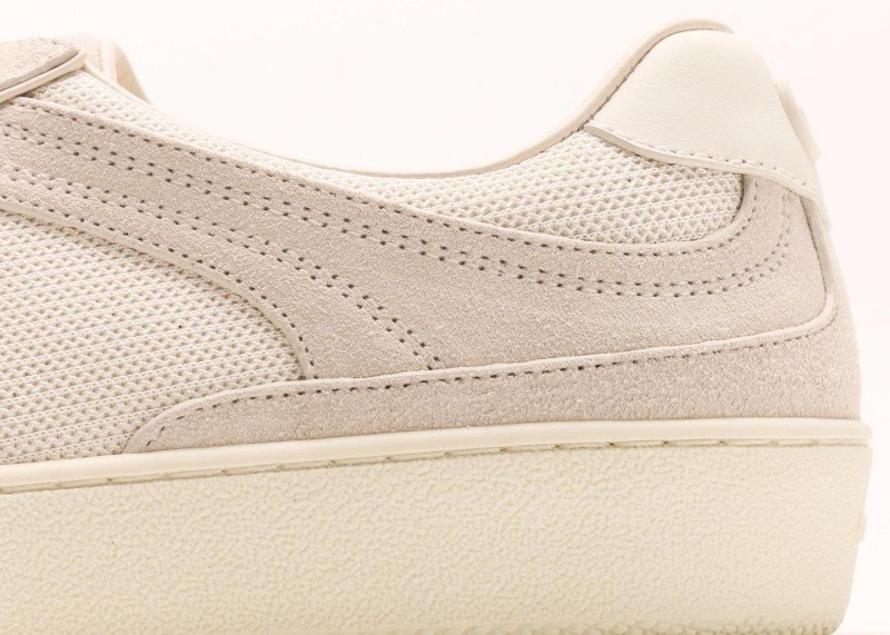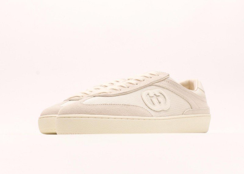 Water-based dyes with color fastness level 4+; rubber outsole contains 20% recycled materials, eco-friendly and odorless, meeting EU standards, with off-white tone enhancing texture.