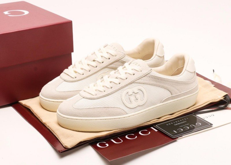 Matte metal double G logo on the side for scratch resistance, embroidered brand logo on tongue with neat stitching, and skin-friendly mesh lining reduces friction. 3cm rubber platform with gradient cushioning improves walking stability by 25%.