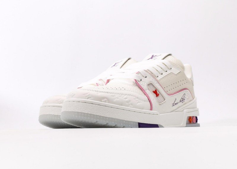 Classic Remodeling & Weaving Innovation|Louis Vuitton Trail Sneaker Low takes pure white leather as the base, with pink lines and brand logos embellished, reshaping and integrating the sports gene of basketball shoes with luxury craftsmanship, and becoming the focus of the fashion and sports circles as soon as it appears.