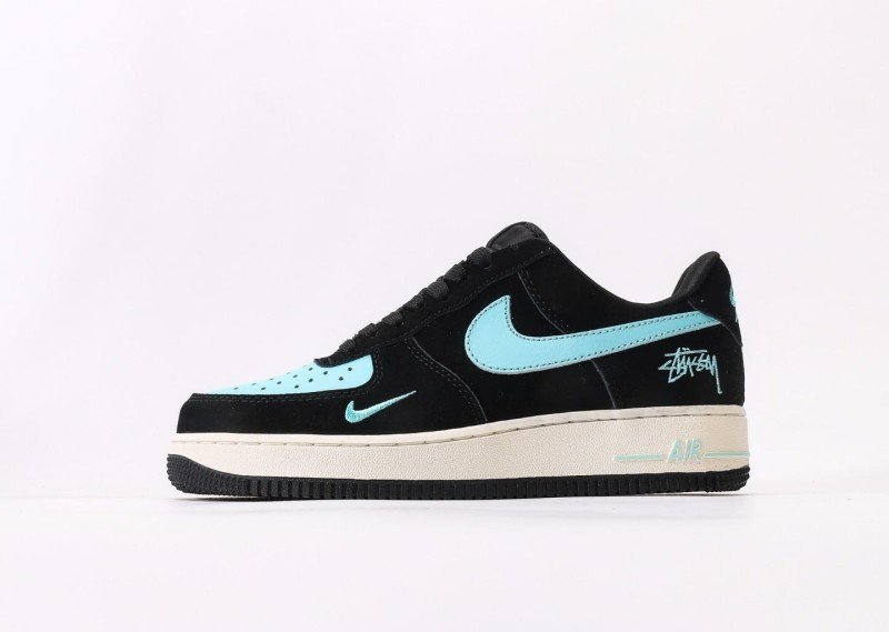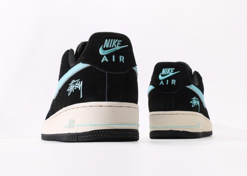 Black suede upper with light blue Swoosh and Stash signature, cream-black rubber outsole with superior grip and durability for daily and street occasions.