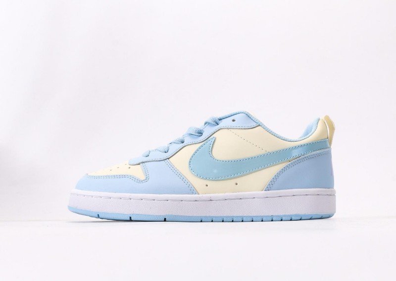 Light blue leather upper with cream accents, light blue Swoosh logo, light blue rubber outsole with superior grip and durability for daily and casual occasions.