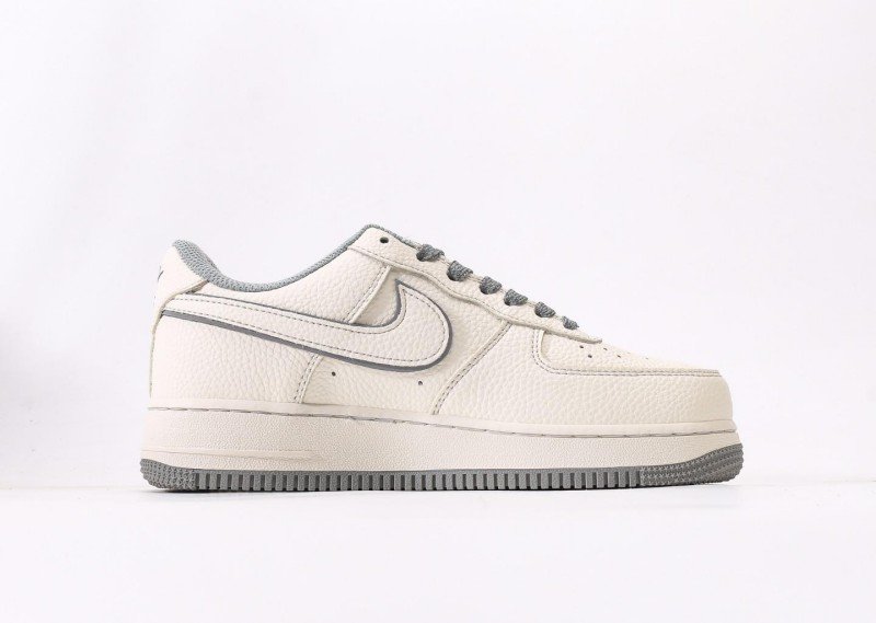 Cream leather upper with gray Swoosh and ape head graphic, gray rubber outsole with superior grip and durability for daily and street use.