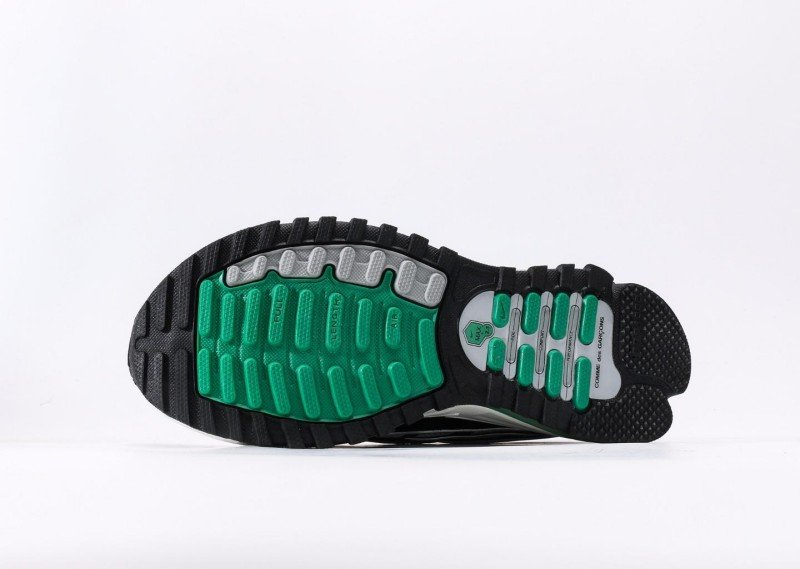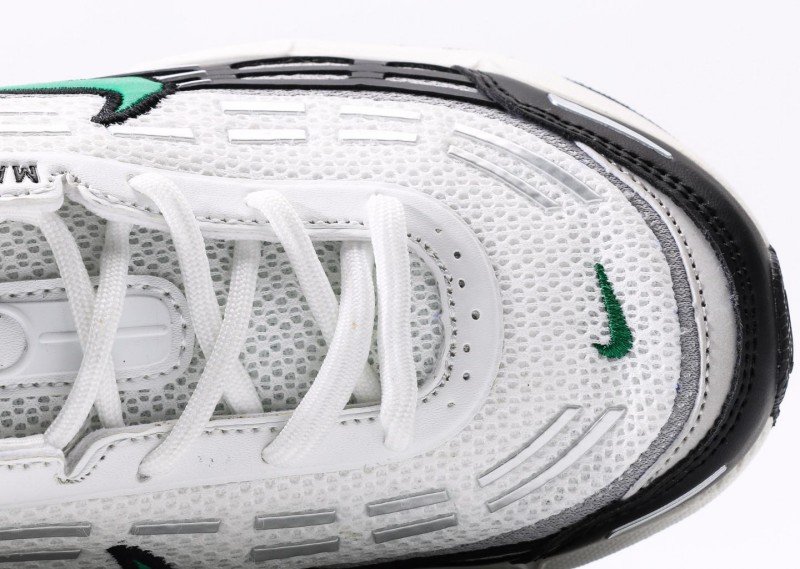 White mesh enhances breathability, black wave stripes add classic touch, vibrant green Swoosh, transparent green cushion with strong visual impact, distinct overall layers.