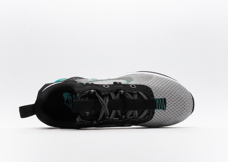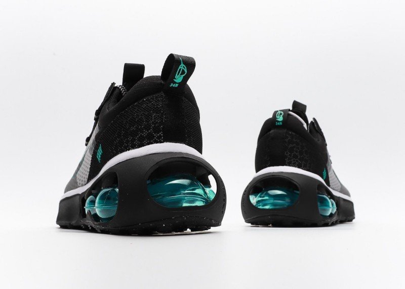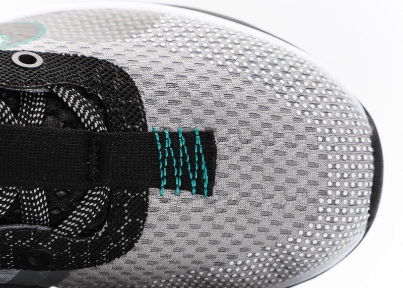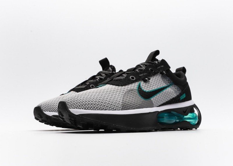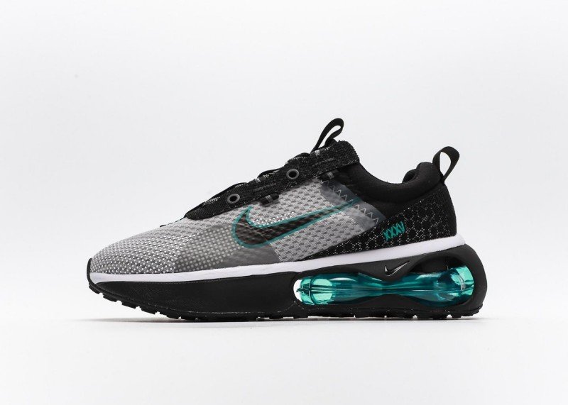 Grey-black-blue-green colorway suitable for training and street fashion, pairing with athletic or casual pants for tech-inspired style, teal accents become highlight.