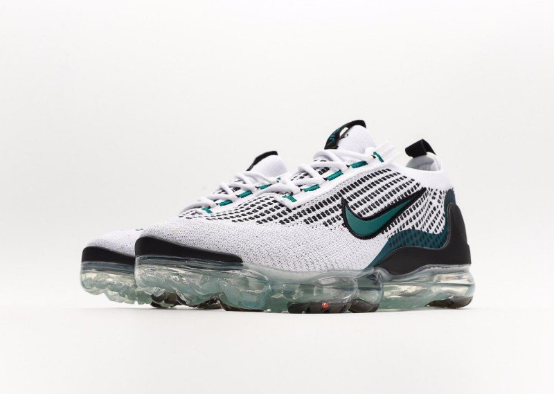 Black-white colorway suitable for sports and casual occasions, pairing with athletic or jeans for vitality, teal accents become highlight.