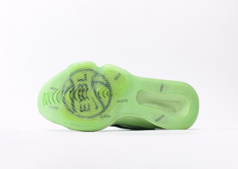 Black reflective Swoosh logo adorns the side panel, with integrated lacing system for streamlined silhouette. Transparent green outsole reveals internal ZOOM air units, showcasing advanced technology.