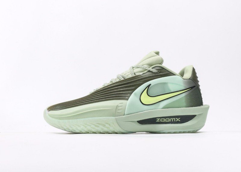 Nike G.T. Cut 3 EP features dense horizontal stripes, light green upper with fresh and elegant design, blending minimalist sporty style and technology.