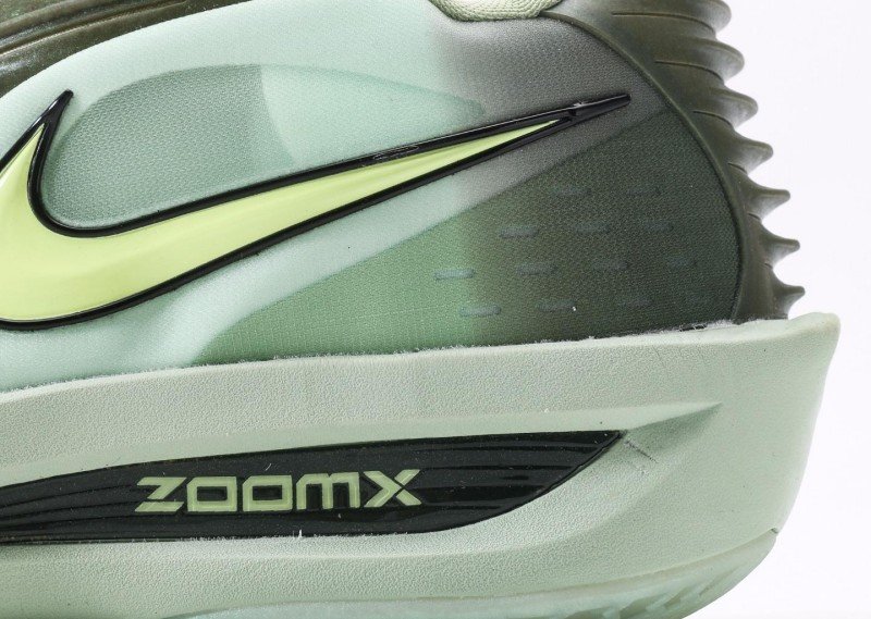Light green ZOOMX sole with forefoot and heel texture enhancing traction, white “ZOOMX” branding on side highlighting technological core, providing excellent cushioning and rebound.