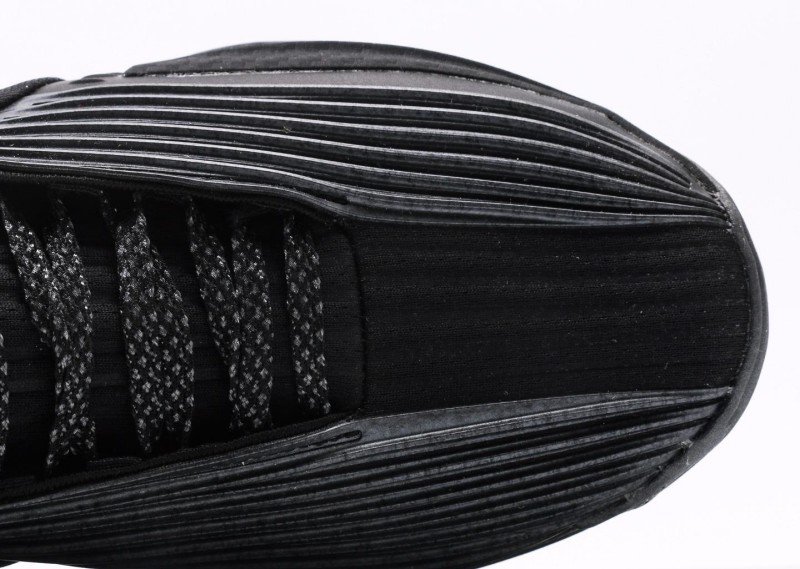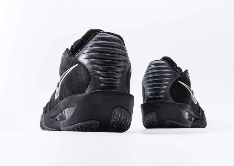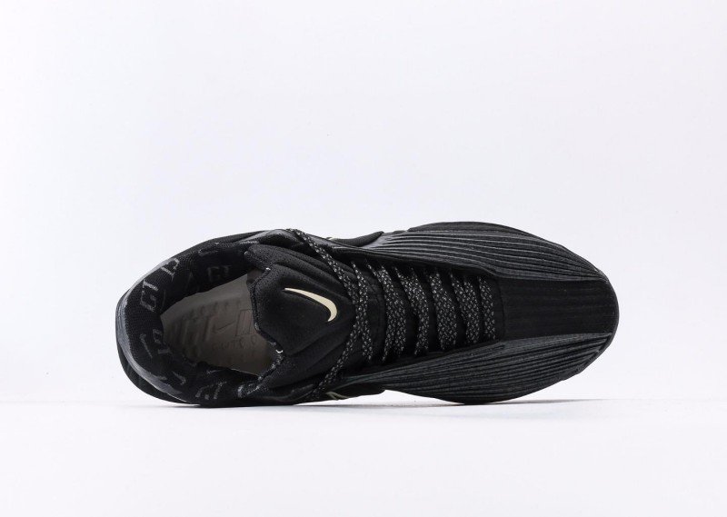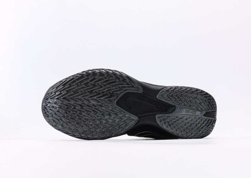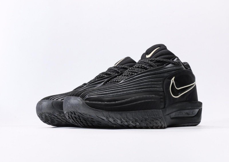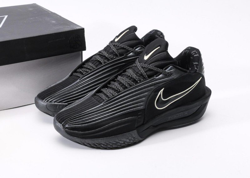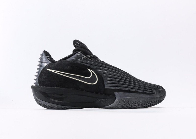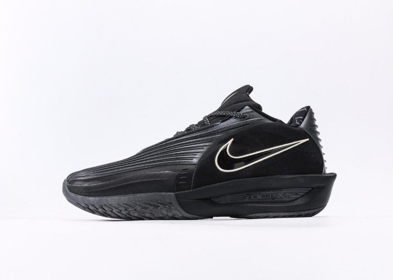Nike G.T. Cut 3 EP features dense horizontal stripes, all-black upper with gold Swoosh logo, blending night cool black style and technology.